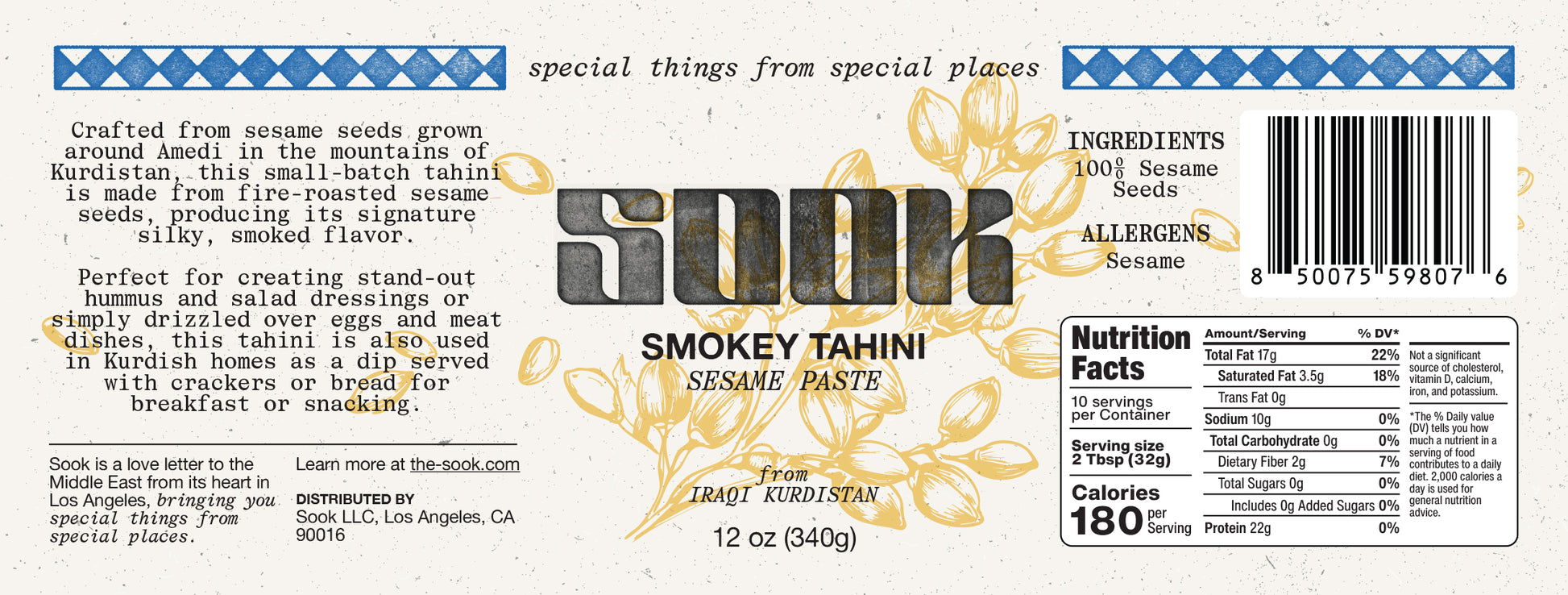 Crafted from sesame seeds grown around Amedi in the mountains of Iraqi Kurdistan, this small-batch tahini is made from wood fire-roasted sesame seeds, producing its signature silky, smoked flavor.